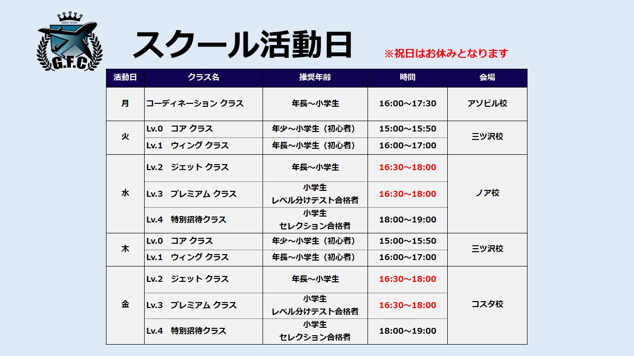 つきまして、Lv.2 ジェットクラス、Lv.3 プレミアムクラスの指導内容・強度を充実させるため、活動時間を現行の60分から90分へ拡大変更させていただきます。