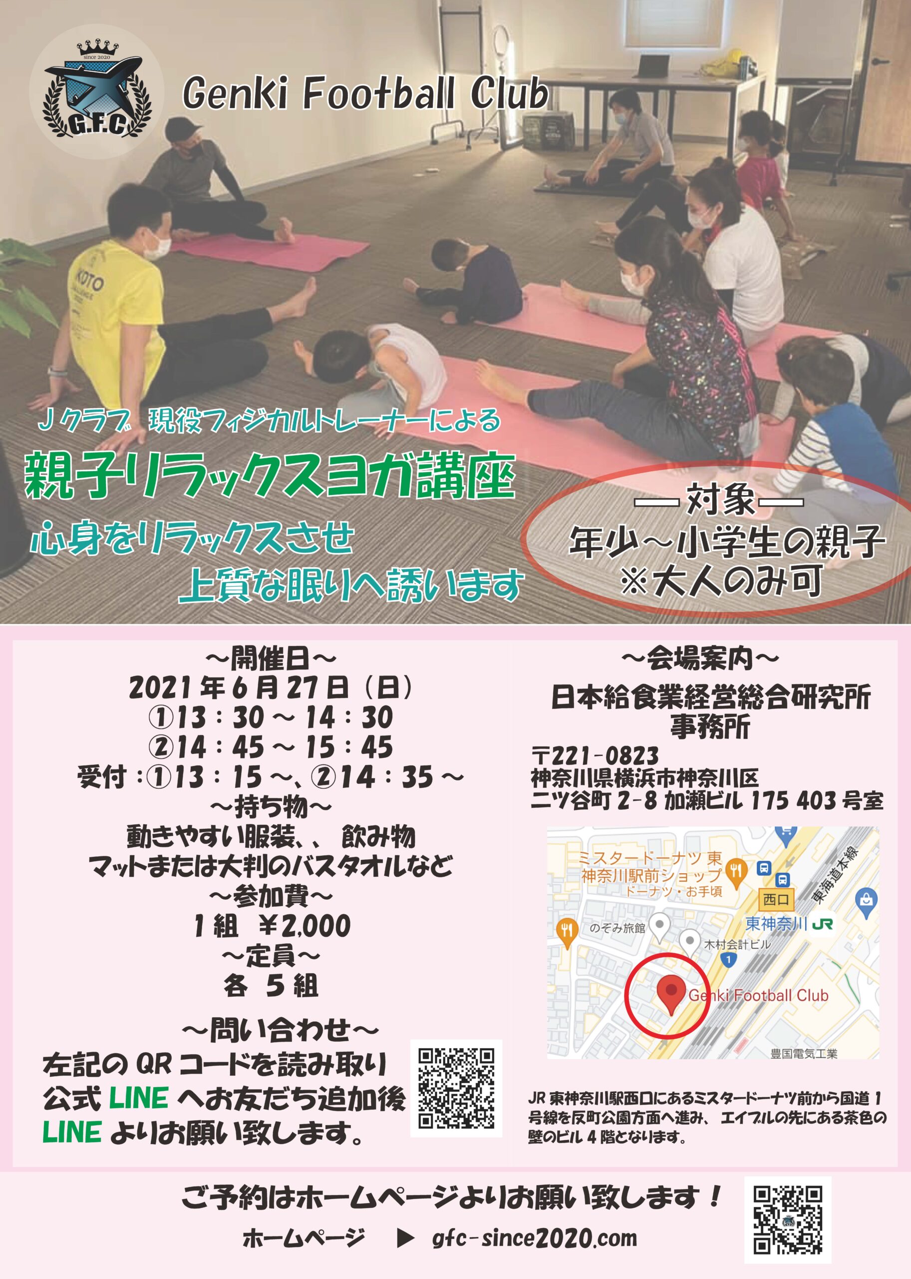 当スクールで3か月に1回実施しているJクラブ現役フィジカルトレーナー秋山氏による親子リラックスヨガ講座を開催致します!